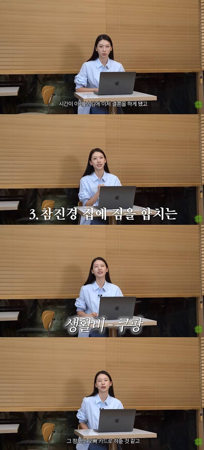 이날 김진경은 김승규와의 결혼 후 얻은 오해에 대해 언급했다. 그는 "다 오빠 카드로 결제한다고 생각하는데 해명하고 싶다"고 운을 뗐다.