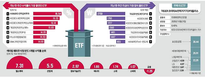 지난 한 주 동안 전력기기 관련 상장지수펀드(ETF)가 수익률 상위권을 차지했다. 관련 기업들이 3분기 호실적을 발표하며 주가가 강세를 보인 덕분이다.