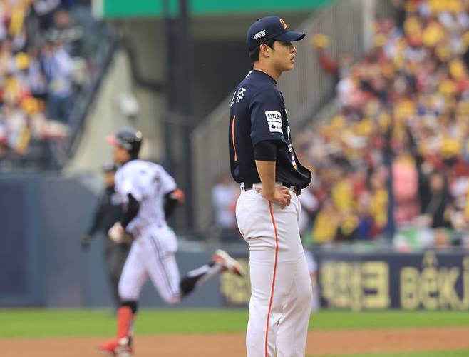 뒤이어 등판한 김범수가 추가 실점 없이 이닝을 마무리지었지만 문동주는 4⅓이닝 4피안타(1홈런) 3볼넷 3탈삼진 4실점(3자책)으로 데뷔 첫 한국시리즈 등판 경기에서 씁쓸함을 맛봤다.