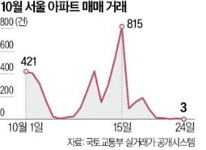‘10·15 부동산 대책’ 영향으로 수도권 규제 지역의 부동산시장이 꽁꽁 얼어붙었다. 거래가 사라진 것은 물론 매물도 급감하고 있다. 지난 3월부터 전역이 토지거래허가구역으로 묶인 강남 3구(강남·서초·송파구)와 용산구처럼 돈 있는 사람만 간헐적으로 거래하는 시장으로 바뀔 것이라는 전망이 나온다.