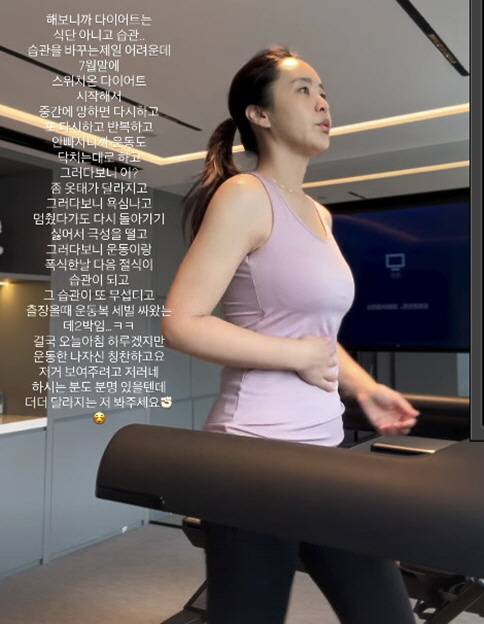 [스포츠조선 정유나 기자] 방송인 박지윤이 다이어트 중인 근황을 공개했다.