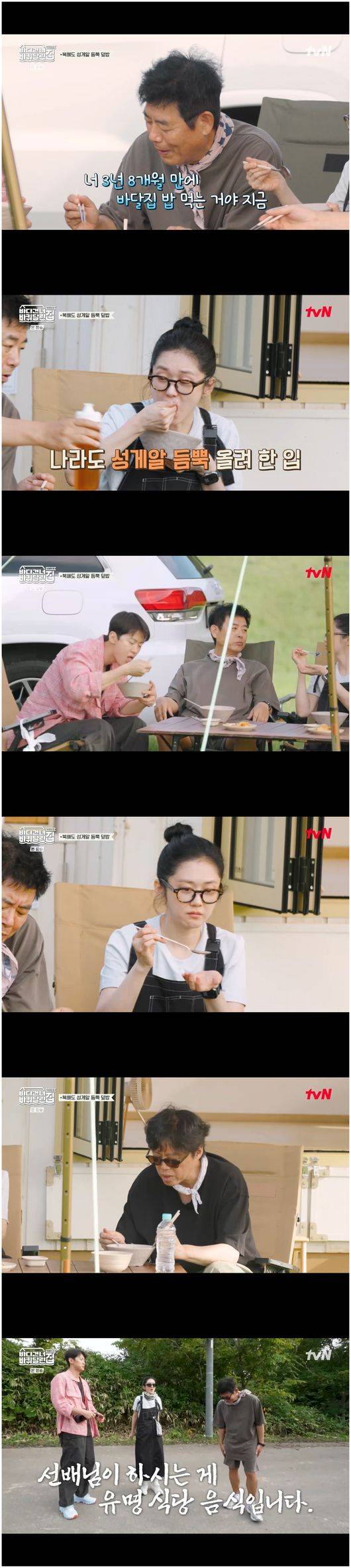 '바다 건너 바퀴 달린 집' 장나라가 성동일의 성게알 덮밥에 감탄을 금치 못하다가 그의 뼈아픈 과거를 건드렸다.