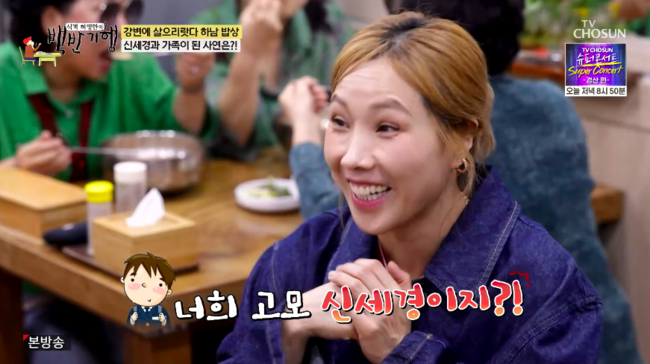 한편, 허영만은 “가족 중에 배우가 있냐”고 물었다. 웃음이 터진 신봉선은 “오해다 오해”라며 “친척들이 다들 제가 신봉선인 걸 말하고 다니지 않는다. 어느 날 조카가 ‘쟤네 고모가 연예인’이라는 소문이 돌았다. 이 조카는 감추고 싶었는데 반 친구가 너희 고모 신 씨니까 ‘신세경이지?” 이렇게 됐다”라고 털어놧다.