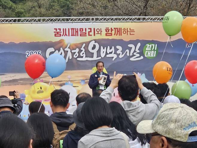 대전시가 주최하고 대전관광공사와 한국걷기운동본부(이사장 이창기)가 공동 주관한 2025 대청호오백리길걷기대회가 25일 오전 10시 대청공원 동광장에서 외국인 등 2,000여명이 참석한 가운데 성대하게 개최됐다. 올해로 열두번째를 맞는 대청호오백리길걷기대회의 주제는 '꿈씨패밀리와 함께'로, 가족간의 사랑을 확인하고 가까운 친구들과의 우정을 다지면서 건강을 도모하는 화합의 자리였다.