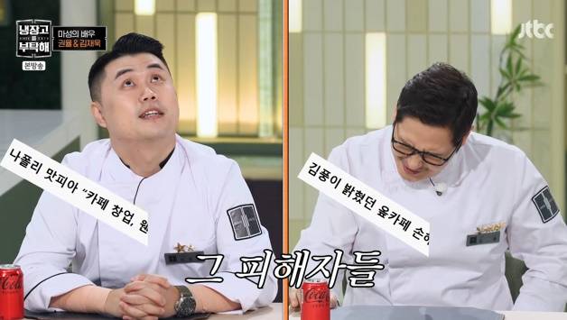 갑작스레 사업 실패의 아픔과 마주한 김풍은 "그 얘기를 갑자기 왜 또 꺼내.."라고 고개 숙였고, 김성주는 "거기도 커피프린스 때문이냐"고 궁금해 했다.