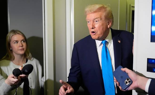 도널드 트럼프 미국 대통령이 24일(현지 시간) 말레이시아, 일본, 한국 등 아시아 순방을 앞두고 전용기 에어포스원에서 ‘북한은 미국과 대화를 하려면 자신들이 핵보유국으로 인정받아야 한다고 주장한다’는 취재진의 질문에 이같이 밝혔다. 그는 또 북한을 “일종의 핵보유국(sort of nuclear power)”이라고 표현했다.