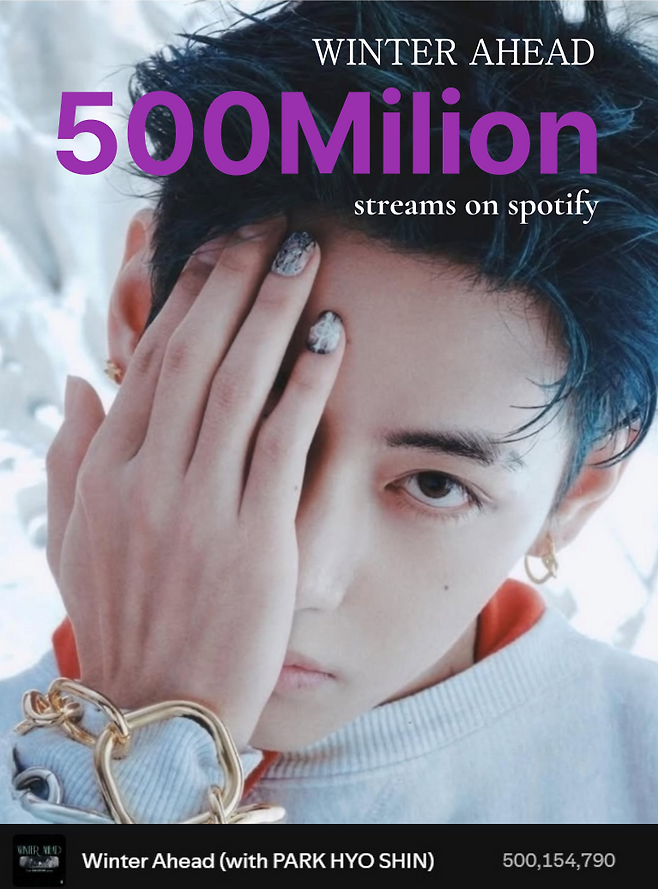 방탄소년단(BTS) 뷔의 '윈터 어헤드(Winter Ahead with Park Hyoshin)'가 스포티파이에서 5억 스트리밍을 돌파했다.