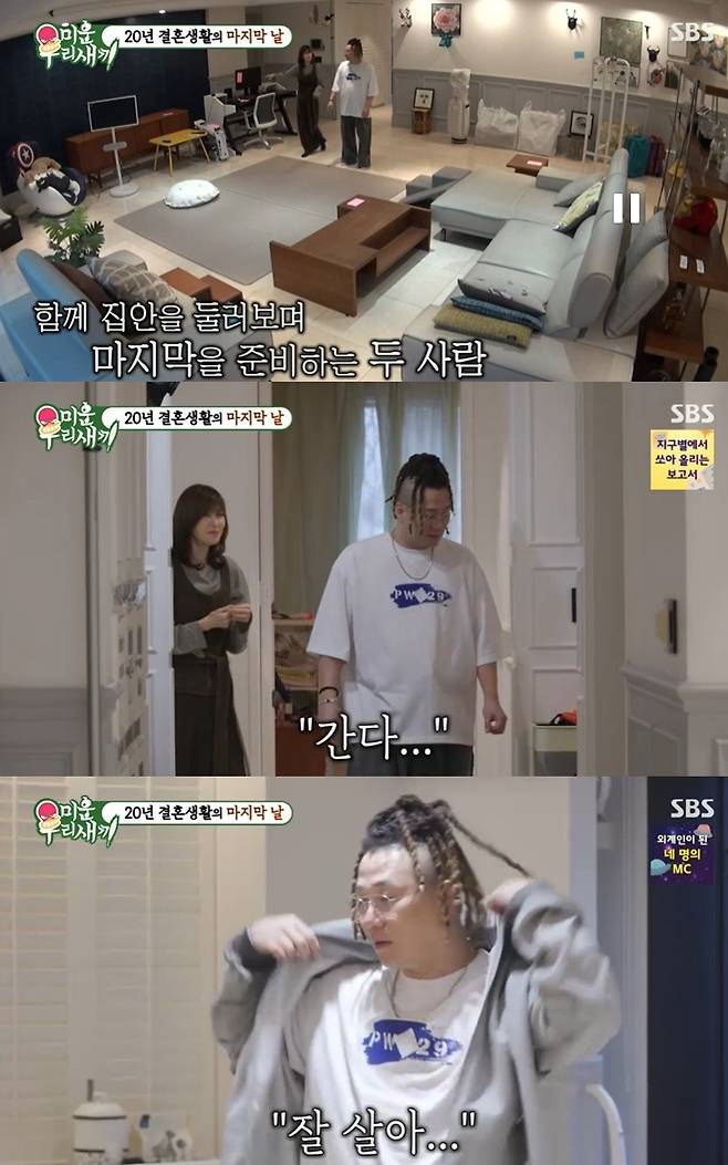 26일 방송된 SBS '미운 우리 새끼'(이하 '미우새')에는 전 아내 김민지 씨와 이혼 후에도 함께 살던 집을 완전히 정리한 윤민수의 하루가 담겼다.