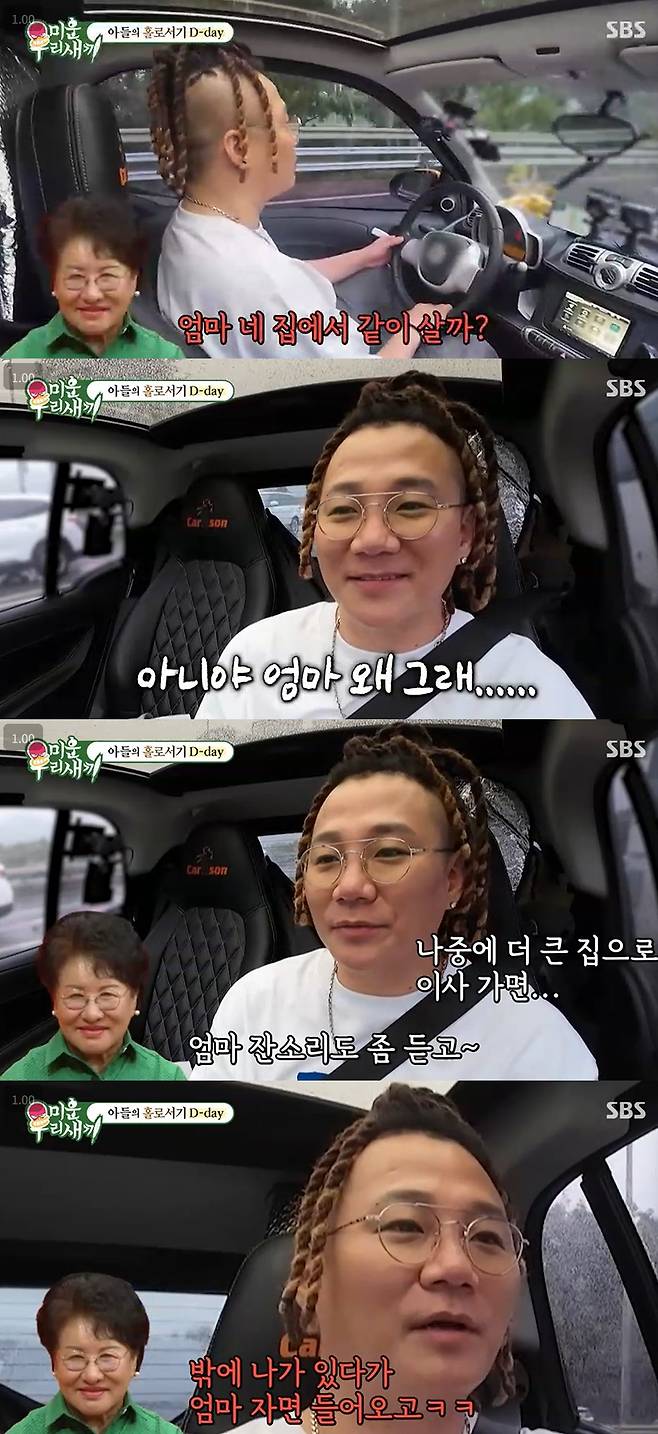 모친은 "짐 정리 다 하고 엄마도 네 집에서 같이 살면 안 될까?"라며 동거를 조심스럽게 제안했지만, 윤민수는 "아냐 엄마, 왜 그러냐"며 당황한 모습을 보였다.
