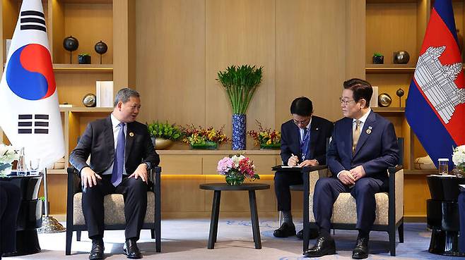 한-아세안(ASEAN·동남아시아국가연합) 정상회의 참석을 위해 말레이시아를 방문 중인 이재명 대통령은 27일(현지시간) 쿠알라룸푸르 시내의 한 호텔에서 훈 마네트 캄보디아 총리와 정상회담을 가졌습니다.