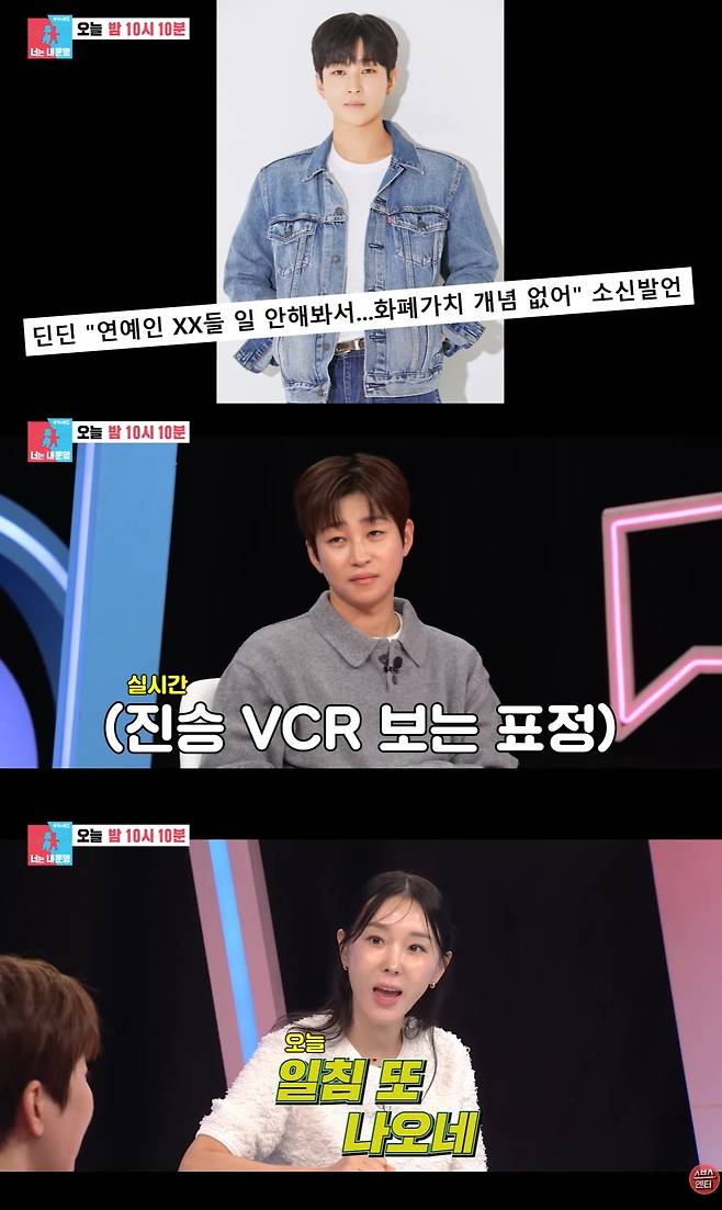 공개된 영상에서는 최근 "연예인들은 화폐 개념이 없다"는 일침 발언으로 화제가 된 '개념 연예인' 딘딘이 등장했다.