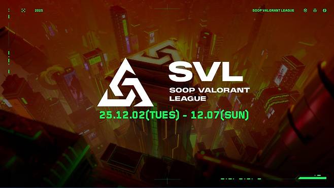 SOOP은 오는 12월 2일(화)부터 7일(일)까지 6일간 글로벌 발로란트 대회인 'SVL(SOOP VALORANT LEAGUE) 2025'를 개최한다고 밝혔다.