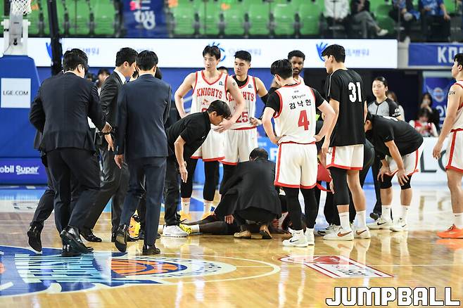 SK는 이날 패배보다 더 큰 걱정거리를 떠안았다. 경기 막판 자밀 워니가 쓰러진 것이다.