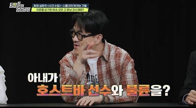 그러나 예상과 달리 그 남성은 의뢰인의 아내에게 거액의 돈을 요구하며 협박하고 있었다. 이와 함께 하루에도 여러 명의 중년 여성에게서 돈을 뜯어내는 그의 모습을 본 데프콘은 "호스트바 선수 아니냐"며 의심을 표했고 이세돌은 "제비도 아니고 도대체 뭐냐"라며 놀라움을 감추지 못했다. 유부녀들을 웃고 울리는 남자의 정체와 의뢰인 아내와의 관계는 방송을 통해 확인할 수 있다.