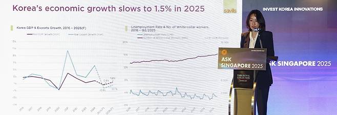 27일 싱가포르 파크로열컬렉션 호텔에서 열린 'ASK 싱가포르 2025'에서 이수정 세빌스코리아 대표는 "금리 인하 기조로 시장의 유동성은 개선되고 있지만 오피스 공급은 여전히 제한적"이라며 이 같이 말했다.