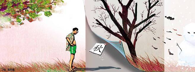 이거 꽤나 충격적이다. '뽀송뽀송' 최적의 나들이 계절, 가을이 여름에 밀려 사라진다니. 바스락 낙엽소리도, 기분 좋게 서늘한 밤공기도 잊혀진다니. 그러고 보니 내 별명 '추남'까지 사라질 위기다. 이러다 '추남'이 아니라 '여름남'이 되게 생겼다.