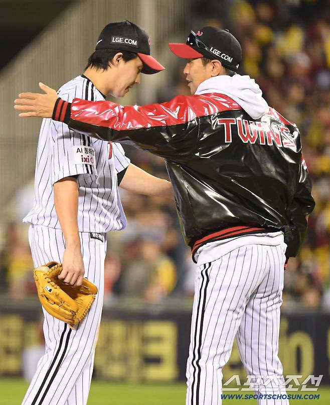 27일 서울 잠실구장에서 열린 한화와 LG의 한국시리즈 2차전. 4회초 2사 만루 위기에서 임찬규가 교체되고 있다. 잠실=정재근 기자 cjg@sportschosun.com/2025.10.27/