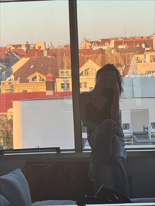 공개된 사진 속 그는 얇은 스트랩의 슬립 드레스와 내추럴한 웨이브 헤어로 우아한 분위기를 연출했다. 대형 창 앞에서 찍은 셀카는 화장기 옅은 얼굴과 대비되어 청초한 매력을 부각시켰다.