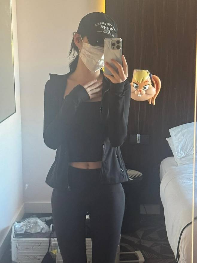 또 다른 컷에서는 청바지를 매치하거나, 블랙 레깅스에 재킷을 걸친 캐주얼 룩으로 색다른 면모를 보여줬다. 마스크와 모자를 착용한 공항 패션은 꾸민 듯 안 꾸민 듯한 감각적인 스타일링이 돋보였다.