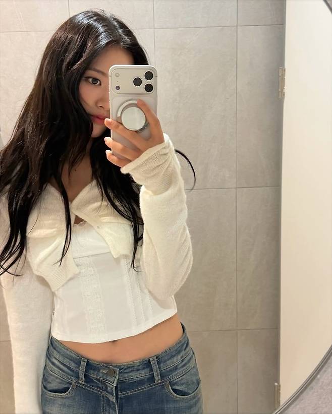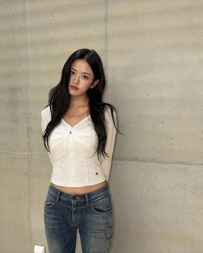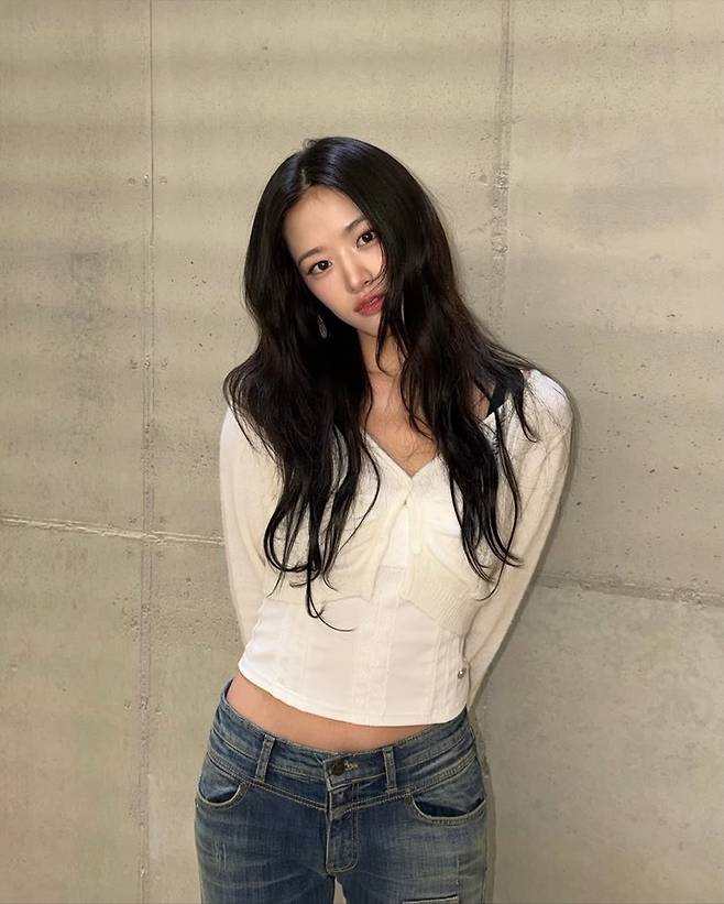 공개된 사진 속 안유진은 화이트 나시 위에 크롭 가디건을 레이어드, 데님 팬츠를 매치해 내추럴한 무드를 완성했다.