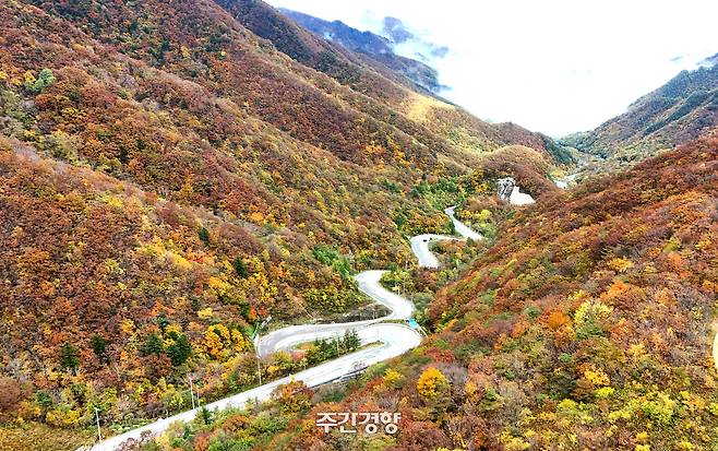 지난 10월 19일 단풍을 보러 강원도 평창군 오대산을 찾았다. 몇 년 전 이맘때 오대산 단풍이 예쁘게 물들었다는 이야기도, 당시 주말이 단풍 절정이라는 뉴스도 크게 마음에 와닿지 않을 때였다. 분명히 어제까지 여름이었으니까. 의심이 무색하게도 산 아래 푸르렀던 나무들은 정상으로 갈수록 알록달록한 색이 덧입혀졌다. 새빨간 단풍은 보기 힘들었지만, 노란색·주황색으로 분명히 물들어가고 있었다.