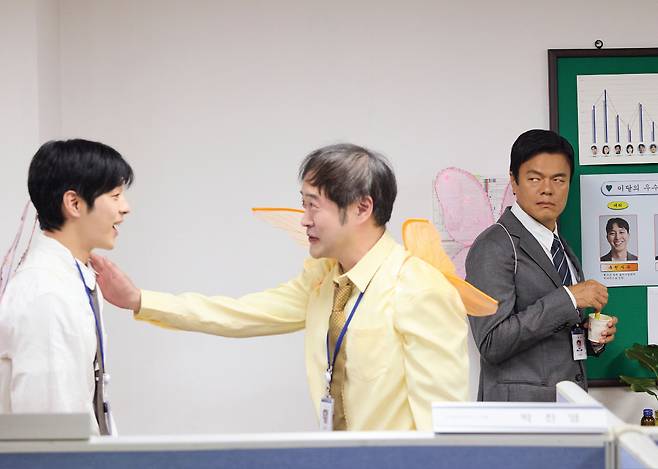 소속사 JYP엔터테인먼트는 27일 오후 공식 SNS 채널에 '해피 아워' 티저 이미지를 깜짝 공개했다. 공개된 티저 이미지에는 삭막한 오피스에서 파티션에 기대 졸거나, 믹스커피를 타며 칭찬받는 동료를 경계하고 흘겨보는 박진영의 모습이 담겼다. 박진영은 리얼한 표정연기로 고군분투하는 직장인의 애환을 유머러스하게 풀어냈다. 또 박진영의 상사로 변신한 권진아는 요술봉을 들고 훈계하는 듯한 액션을 취해 눈길을 끈다. 특히 두 사람의 어깻죽지에는 핑크빛 요정 날개가 달려 이번 신곡 콘셉트를 향한 궁금증을 높였다.