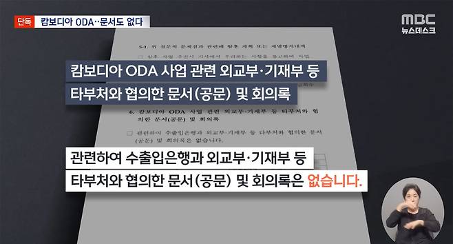 MBC는 그동안 연속보도를 통해 수출입은행이 사업제안서를 전혀 검토하지 않고 졸속으로 진행했으며, 이 사업과 관련해 정부 부처들이 협의한 공식 문서조차 존재하지 않는다는 사실을 밝혀냈습니다. 다만 이렇듯 수상한 점들이 한두가지가 아닌 사업임에도 도대체 어느 단계에서, 어떤 기관의 주도로 편성됐는지는 의문으로 남았는데요.