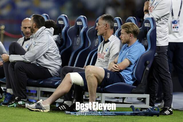 PK 넣고 쓰러진 더 브라위너, 오른쪽 허벅지 고도 파열 판정… 쓰러진 나폴리 전술 핵심, 장기간 결장 불가피