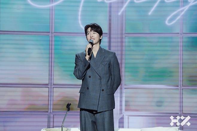 또한 그는 "첫 등장 때 문이 열리면서 몇몇 분들과 눈이 마주쳤는데 긴장이 됐다. 반겨주셔서 감사드린다. 배우로서 좋은 작품으로 빨리 인사드리겠다. 오늘의 주제가 행복이었는데, 저의 행복이 되어주셔서 감사드린다. 오늘은 제게도 행복이 충만한 시간이었다"라며 팬들에게 진심을 전했다.