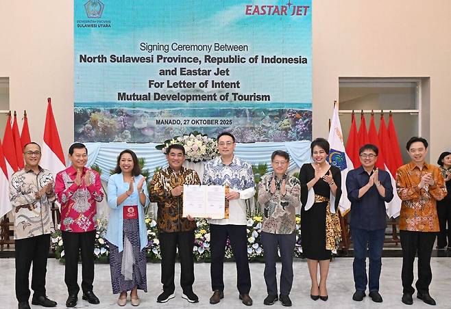 신규 취항을 기념해 이스타항공과 인도네시아 북술라웨시주는 27일 마나도 현지에서 '마나도 관광 활성화'를 위한 협력 의향서(LOI:Letter of Intent)를 체결했다. 체결식에는 이스타항공 이경민 커머셜본부장과 인도네시아 북술라웨시주 율리우스 셀바누스(Yulius Selvanus) 주지사등이 참석했다.