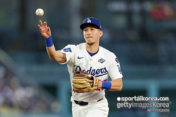 에드먼은 28일(이하 한국시간) 미국 캘리포니아주 로스앤젤레스 다저 스타디움에서 열린 2025 메이저리그(MLB) 월드시리즈 3차전 토론토 블루제이스와의 경기에서 7번 타자-2루수로 출전했다.