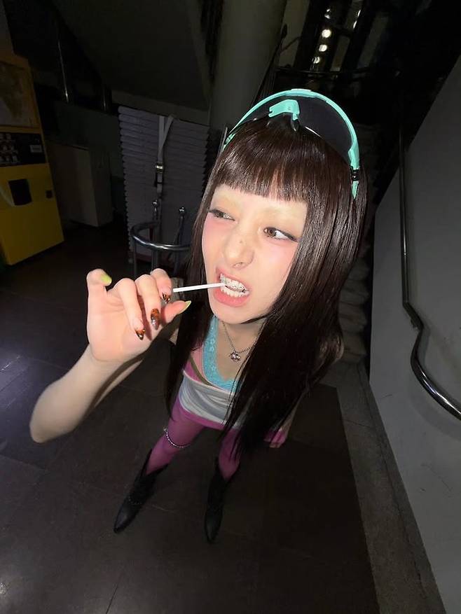 허윤진은 28일 자신의 SNS에 여러 장의 사진을 공개했다. 분홍색과 파란색의 과감한 색상 조합, 눈썹 탈색 등으로 귀엽고 발랄하면서도 파격적인 스타일링을 선보이며 주목받았다.