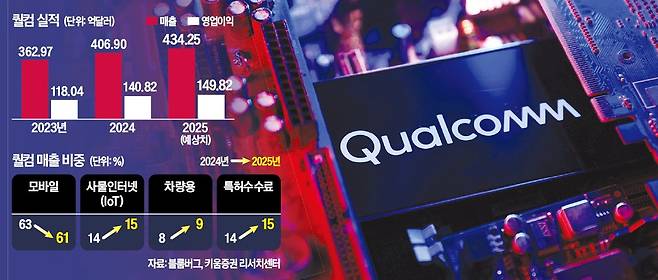 이에 따라 퀄컴은 다른 사업을 통해 돌파구를 마련하고 있다. 지난달 BMW와 3년간 공동 개발한 자율주행 플랫폼 ‘스냅드래곤 라이드 파일럿’을 공개하며 자율주행차용 반도체 시장 공략을 본격화한 게 본보기다. 플랫폼은 최첨단 차량용 반도체와 AI 소프트웨어를 통합한 것으로, BMW의 최신 전기차 ‘iX3’에 처음으로 장착됐다.