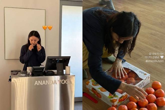 한 수강생은 한 장의 사진과 함께 "감 나눠 주시는 아난다 선생님"이라고 설명했다. 공개된 사진에는 이효리가 박스에서 홍시를 꺼내는 모습이 담겨 있었다. 또 다른 수강생은 "오늘 요가는 어쩜 이리도 단감"이라고 재치있게 표현하며, "사실 오늘 드위파다시르샤 처음 성공이었다. '효리효과'였나보다"라고 기쁜 마음을 드러냈다.