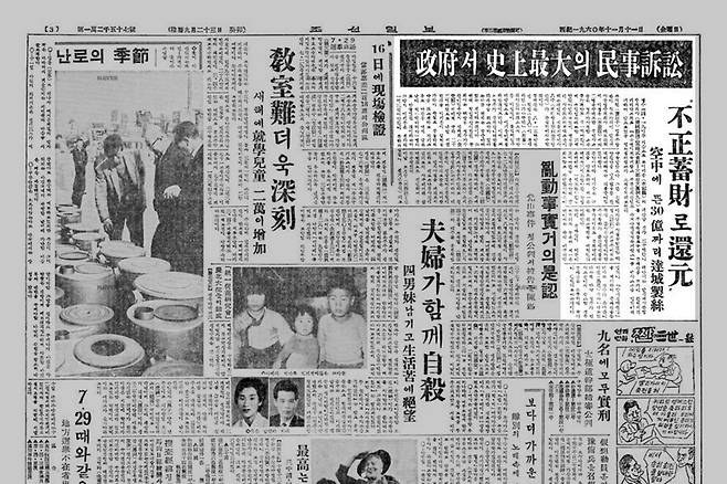| ▲ 1960년 11월 11일 자 <조선일보> 기사 "정부서 사상최대의 민사소송" |