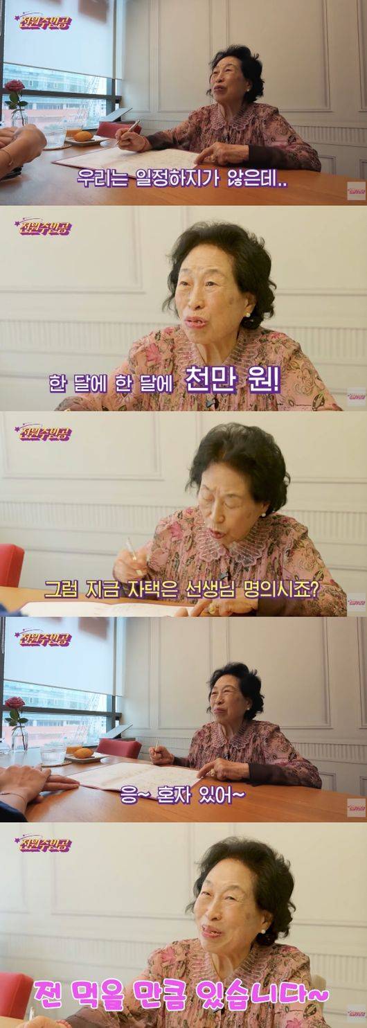 전원주는 자택도 자신의 명의라고 밝히기도. 전원주는 “55평 빌라다”라고 설명했다. 전원주는 재산, 부동산까지 적어야 한다고 하자 공개하기 싫다고 선을 그었다.
