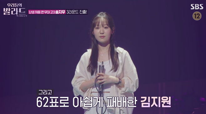 ‘우리들의 발라드’ 참가자 김지원이 박효신의 ‘숨’을 열창했지만 송지우에 패배했다.