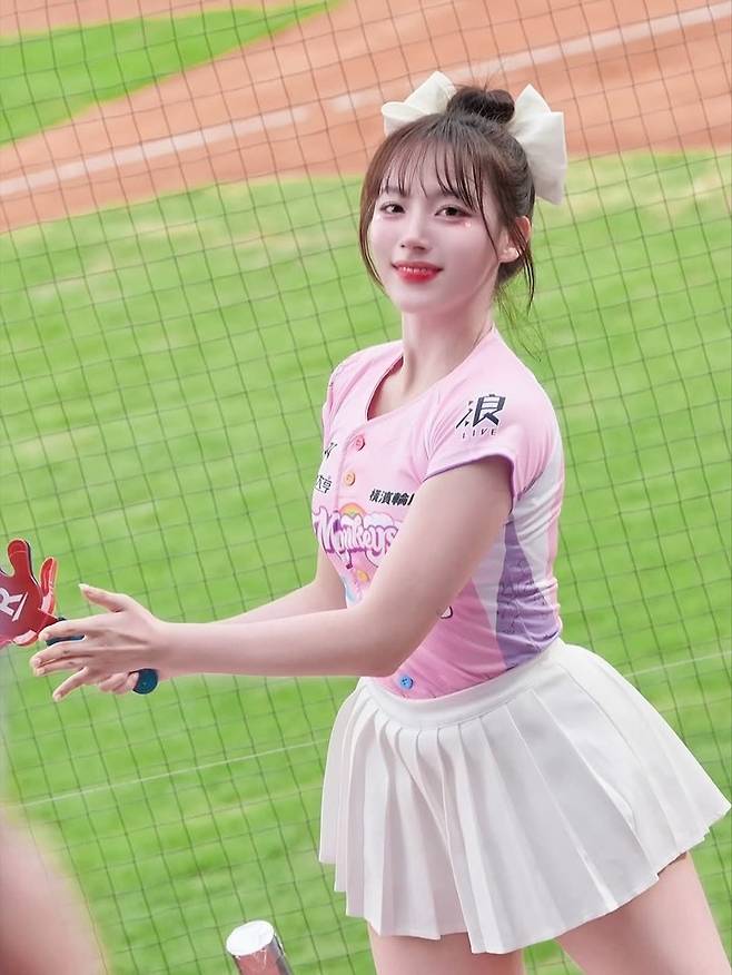 특히 군더더기 없이 맑은 피부와 미소는 '있지 유나 닮은꼴'이라는 반응을 이끌었고, 응원복을 입은 채 활짝 웃는 모습은 풋풋하면서도 프로 치어리더다운 에너지를 전했다.