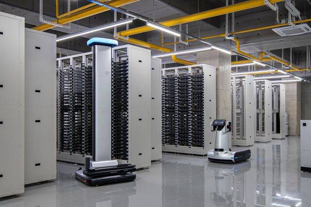 각 세종 곳곳에는 국내 최초 AI 데이터센터를 만든 네이버의 기술력이 담겼다. 그래픽처리장치(GPU)가 들어선 핵심 공간 서버실은 자연 바람을 활용하는 공조 시스템 ‘나무-Ⅲ’가 적용돼 365일, 24시간 22~26도를 유지한다. 데이터센터를 오가는 관리 로봇 ‘가로’와 ‘세로’(사진)도 눈길을 사로잡았다. 서버 랙 높이인 3.2m에 맞춰 설계된 세로는 서버 위치를 스스로 인식하고 작업자가 접근하기 어려운 높은 공간까지 운반 작업을 수행한다. 서버실과 창고를 오가는 가로는 400㎏에 달하는 고중량 장비를 싣고 최대 초속 2m로 주행이 가능하다.