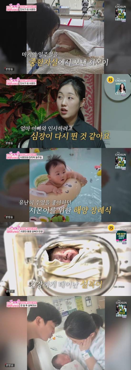 박보미는 "저희에게는 천사 같은 아이었다. 장례식도 주변에서 3일장 안 한다고 말렸는데 저희는 많은 사람들이 시몬이를 봤으면 좋겠다고 해서 3일장을 했다. 또 시몬이가 수영하는 걸 좋아해서 해양 장례를 하고 바다에 뿌려줬다. 그날 비 소식이 있었는데 저희가 뿌려주려고 바다에 갔더니 날씨가 화창했다. 우리 시몬이가 하늘나라에 잘 도착했다 생각하고 씩씩하게 보내줬다. 그런데 그러고 나서 집에 왔을 때 후폭풍이 컸다. 여기 와서 옷장을 열고 계속 울었다. 애기 냄새랑 물건이 다 있는데 시몬이만 없었다"고 눈물을 비췄다.