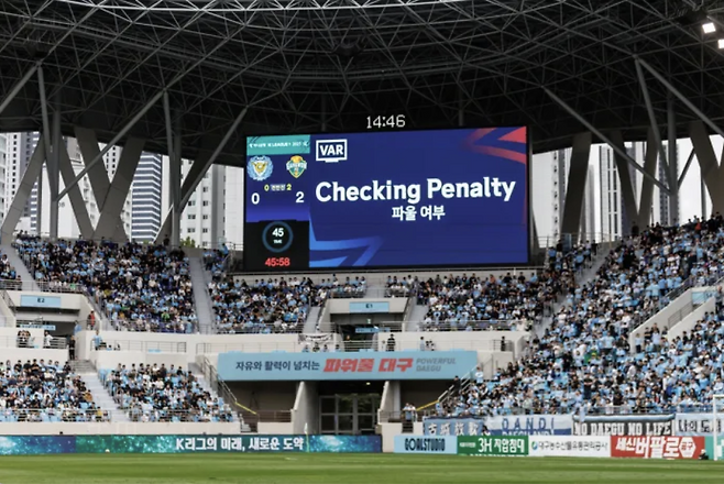 하지만 K리그는 경기장 인프라 문제로 주심이 무선 마이크를 착용할 수 없는 구조다. 그래서 다른 리그와 달리, 주심이 대기심 근처까지 이동해 손에 든 마이크로 판독 결과를 발표하는 방식을 택하고 있다.