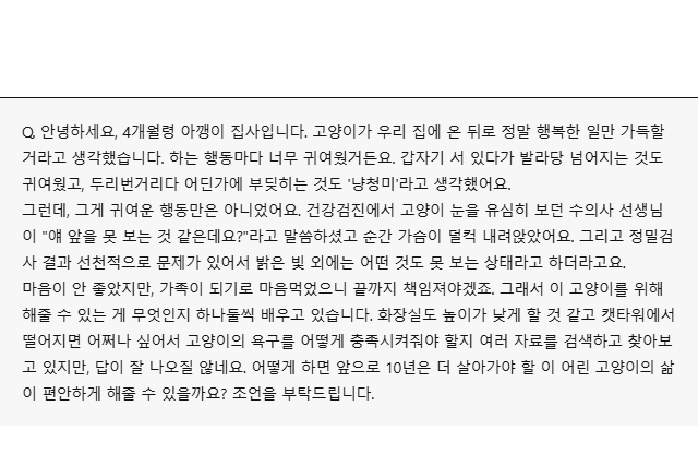 귀여운 '냥청미'인줄 알았는데 '시각장애'일 줄은… 제가 평생 책임질 수 있을까요?