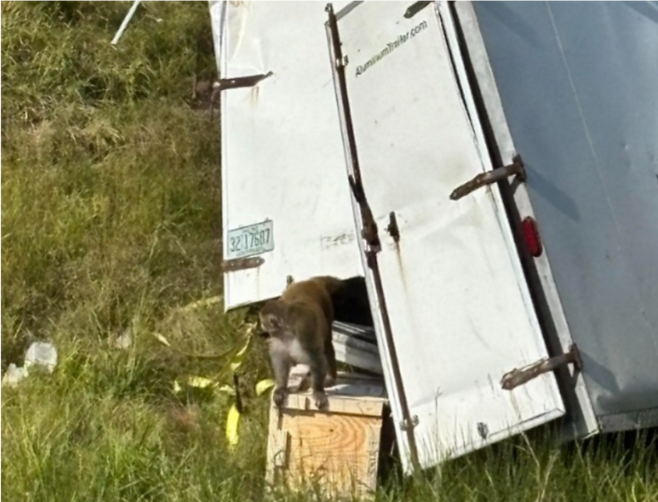 트럭은 루이지애나주 뉴올리언스 툴레인대학교 실험실 소속 원숭이 21마리를 플로리다주의 다른 연구기관으로 이동 중이었다.