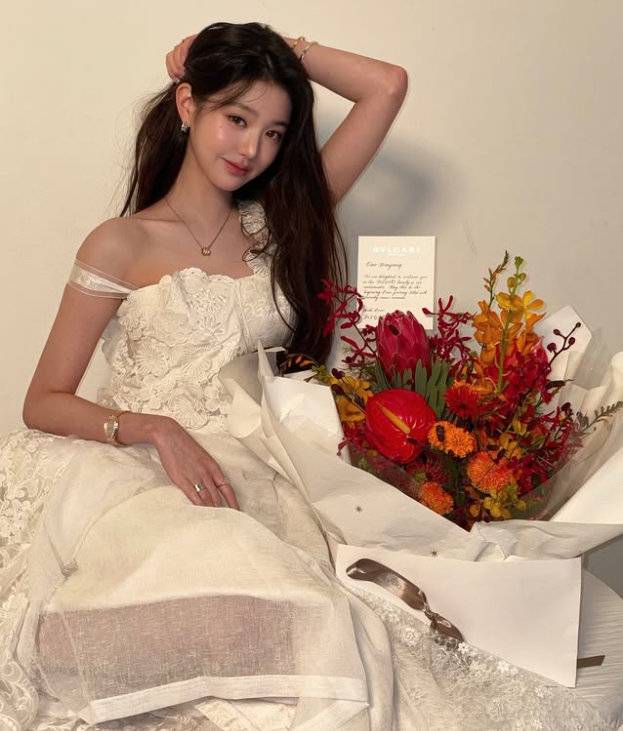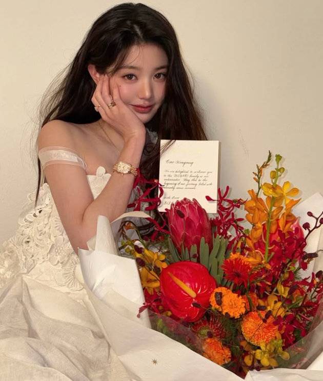 아이브 장원영이 순백의 드레스 자태를 뽐냈다.