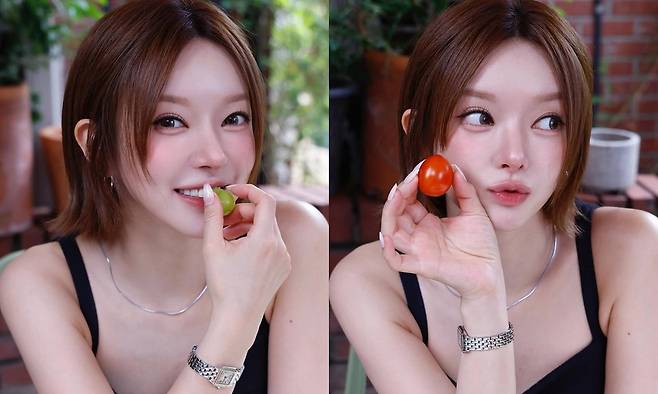 공개된 사진 속 초아는 블랙 민소매 원피스를 입고 방울토마토와 청포도를 들고 포즈를 취하고 있다. 단정한 단발머리와 맑은 피부, 과즙미 넘치는 메이크업이 조화를 이루며 상큼하고 청량한 매력을 발산했다. 특히 환하게 웃는 초아의 표정에서는 밝고 긍정적인 에너지가 물씬 느껴지며, 예전보다 한층 부드러워진 분위기가 시선을 사로잡았다.