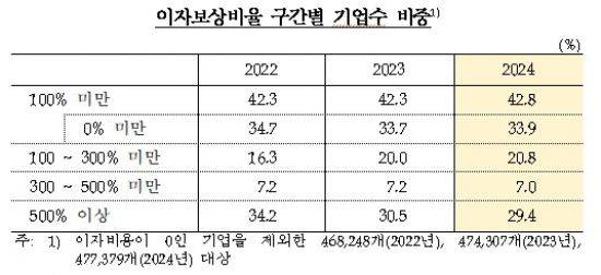 이자보상비율 100% 미만 기업도 42.8%로 늘어