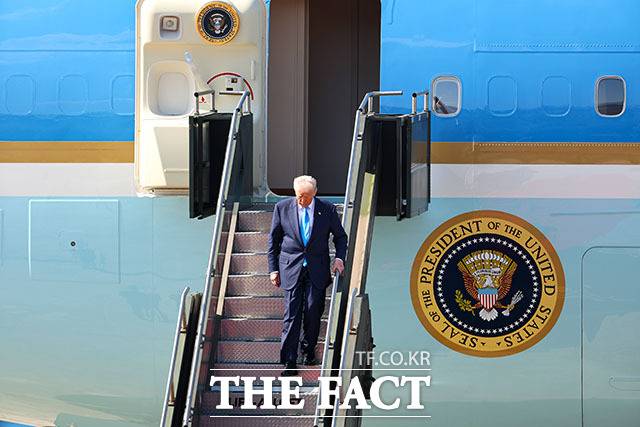 [더팩트ㅣ이효균 기자] 도널드 트럼프 미국 대통령이 29일 오전 11시 30분쯤 부산 김해국제공항에 도착해 대한민국 국빈 방문 일정을 시작했다. 트럼프 대통령은 6년 만에 한국 땅을 밟게 됐다.