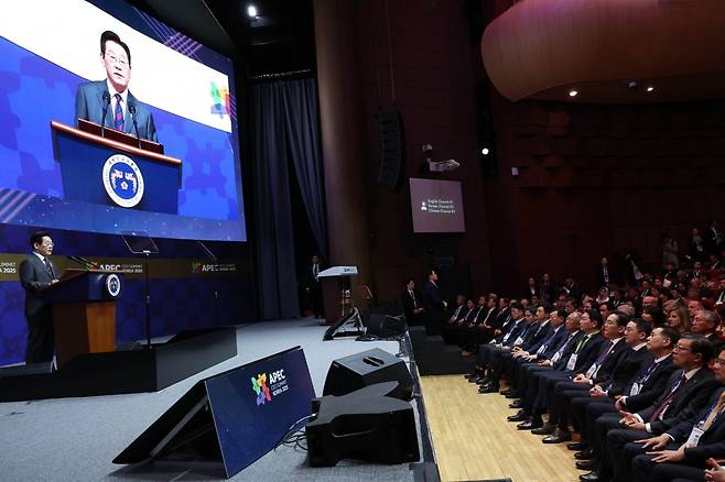 [포토] 李대통령, APEC CEO 서밋 개막식 특별 연설 [APEC 2025]