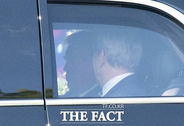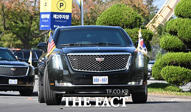 [더팩트|경주=박헌우 기자] 2025 아시아태평양경제협력체(APEC) 참석을 위해 국빈 방한한 도널드 트럼프 미국 대통령이 29일 오후 경북 경주에 도착해 전용 리무진 '더비스트'를 타고 APEC 서밋 장소로 이동하고 있다.