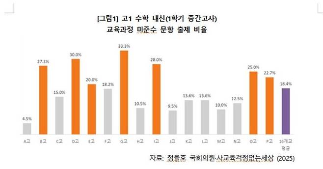 사교육 과열 지구, 자사·특목고, 대입 실적 상위 고교에서 수학 시험의 교육과정 미준수 문항 판정 비율이 16개교 평균을 웃돌았습니다.